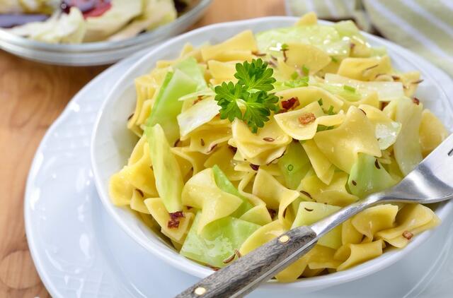 Jei turite pakelį makaronų, pusę kopūsto, likę keletas riešutų – pigūs ir gardūs pietūs garantuoti. Sveikatai palankios mitybos konsultantė, gydytoja dietologė dr. Edita Gavelienė pastebi, kad kopūstas – itin vertinga daržovė, turinti priešuždegiminių savybių.