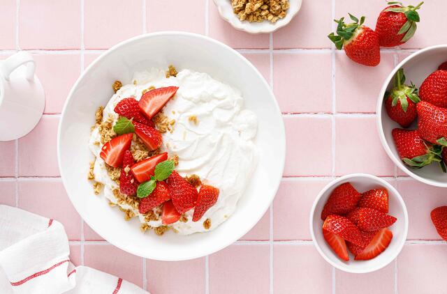 Tad jei namuose turite indelį graikiško jogurto ir kelias saujas šviežių braškių, galite akimirksniu palepinti save sveiku, maistingu ir nebrangiu užkandžiu. Jums reikės: