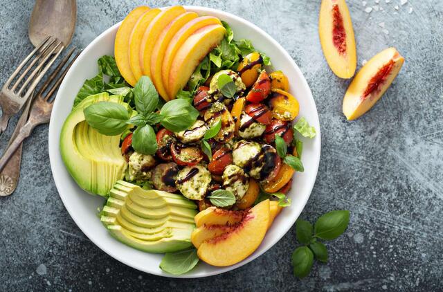 Pasigaminkite gaivių vasariškų salotų – joms panaudosite tiek abrikosus, tiek persikus.