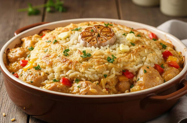Viską dedame į orkaitę ir pamirštame: skaniausia vištienos ir ryžių vakarienė gaminasi pati