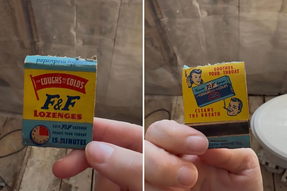 Toliau apžiūrėdama atviras vonios sienas, T. Cullen rado ir seną „F&F“ pastilių nuo kosulio dėžutę, tikriausiai paliktą prieš kelis dešimtmečius. Ji planuoja šiuos radinius paversti nuolatiniu atnaujinto vonios kambario akcentu.