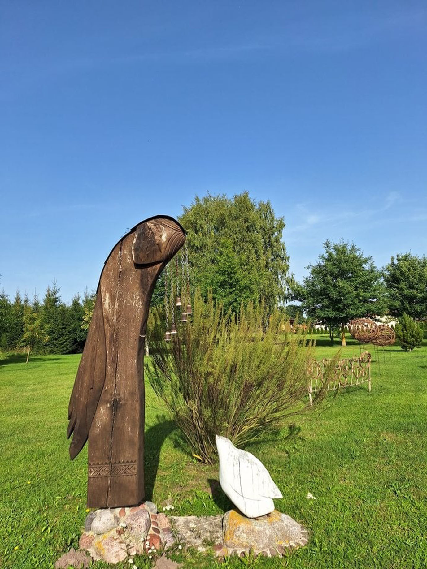 Kai saulėtą rudens popietę įsukau į keliuką, vedantį pro Alvito miestelį į Kiršų kaimą, į S.Nėries gimtinę, mane šalikelėje pasitiko tautodailininko Raimondo Blažaičio skulptūra. Iš medžio išdrožtas paukščio pavidalo moters siluetas, ir priešais tupintis baltas balandis. Salomėja ir jos sūnelis Saulius, kurį ji vadindavo Balanduku.