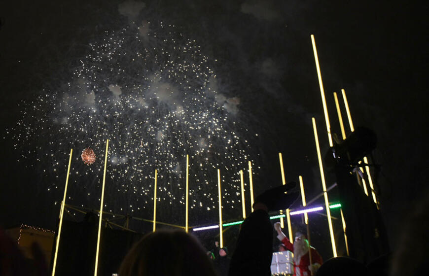 (1)Kalėdų eglutės įžiebimo šventėje praėjusį savaitgalį fejerverkai buvo staigmena - apie juos organizatoriai neskelbė iš anksto. Dar viena staigmena buvo tai, kad pasirinkti kitokie, sidabriniai fejerverkai, kurie, teigiama, yra palankesni aplinkai ir gyvūnams.