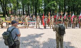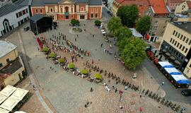 Susirinkusieji turėjo progą pamatyti vėliavos perdavimo ceremoniją.
