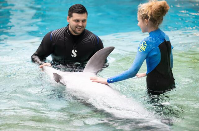 Siūlo naują programą šeimoms Delfinų terapijos centre