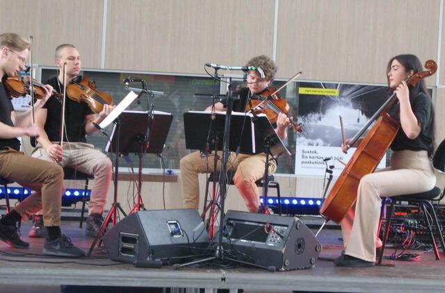 Du vaikinukai iš Ukrainos, penktadienį atskubėję į Klaipėdos geležinkelio stotį pirktis traukinio bilietų į Vilnių ir pamatę keleivių laukimo salėję grojantį styginį kvartetą, negalėjo nuslėpti savo nuostabos. „Kaip gražiai groja", - sakė vienas jų.
