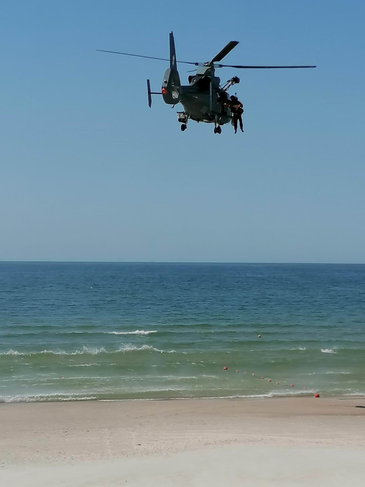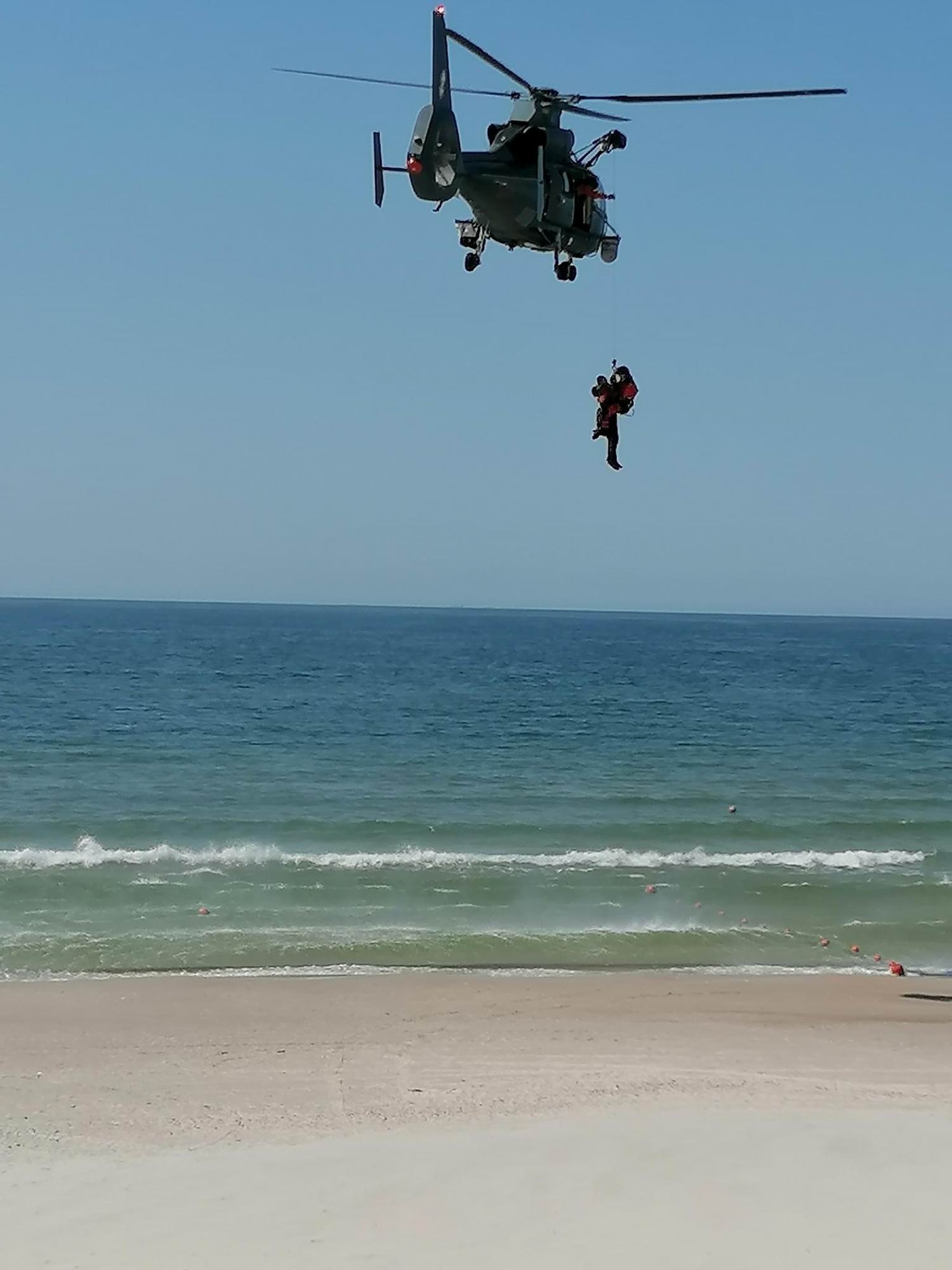 „Vyko bendros žmonių gelbėjimo pratybos, kuriose dalyvavo Klaipėdos paplūdimių gelbėtojai, jūrų gelbėjimo koordinavimo centras, karinių oro pajėgų sraigtasparnis, Klaipėdos greitosios medicinos pagalba, BPC 112 ir policija.