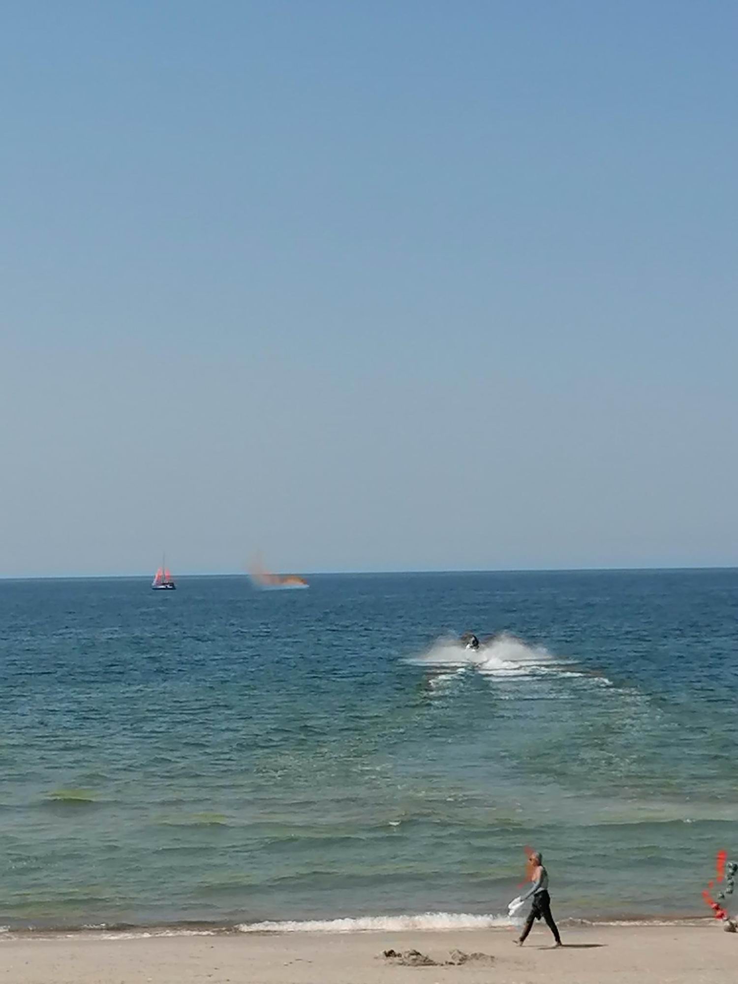 (1)Matomi vaizdai traukė praeivių žvilgsnius: jūroje apvirto jachta su 8 žmonėmis ir susivienijusios tarnybos vykdė gelbėjimo darbus.