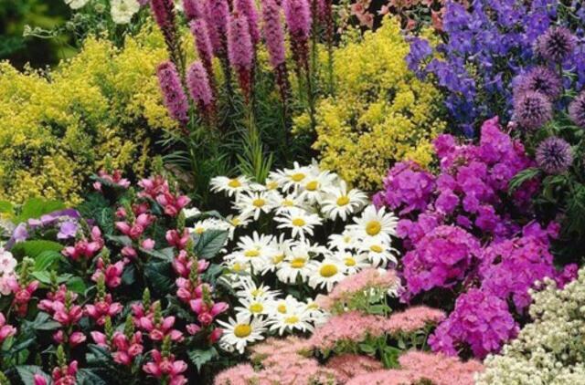 Be šių daugiamečių augalų, du-tris mėnesius žydi gvaizdė, astrancijos, delfinijos, lelijos, kraujažolės, kurios neabejotinai papuoš bet kurį sklypą.