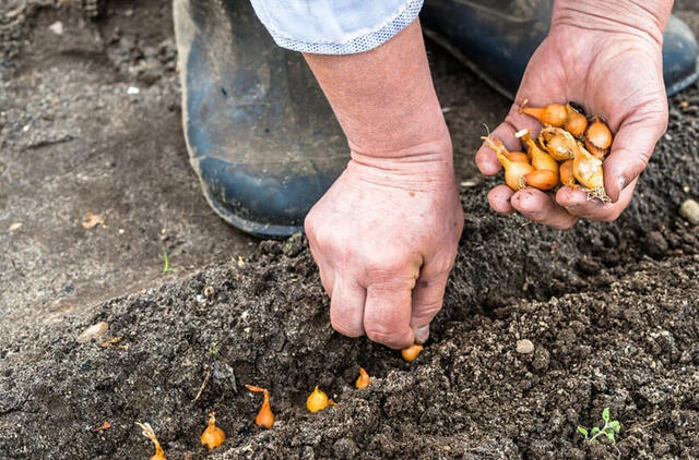 Sodinimo gylį lemia daigų dydis: kuo didesnis svogūnėlis, tuo giliau jį galima sodinti.