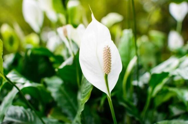 Spathiphyllum, dar vadinamos lelijomis, mėgstamos dėl savo gražių žiedų ir gebėjimo valyti orą bei sugerti drėgmę.
