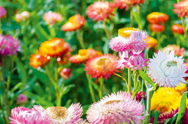 Tačiau sode jis atsiskleidžia iš tiesų: krūmeliai, nusėti įvairių atspalvių pilnaviduriais krepšeliais – nuo švelniai kreminės ir citrininės iki rubino ir purpurinės spalvos – primena keistas girliandas, apšviečiančias gėlyną švelniu švytėjimu.