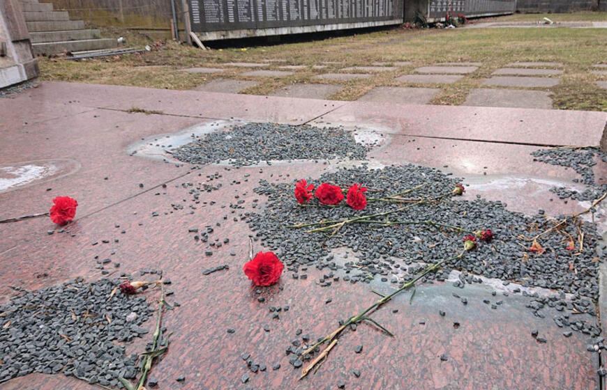 Glėbiais atnešamos gėlės nuvysta ir nėra išgabenamos į šiukšlių konteinerius: jos mėtosi arba ant grindinio, arba yra tiesiog sukrautos į krūvą, padėtos prie pačios garbingiausios šio memorialo vietos: žuvusių karių panteono su granito plokštėse iškaltomis pavardėmis.