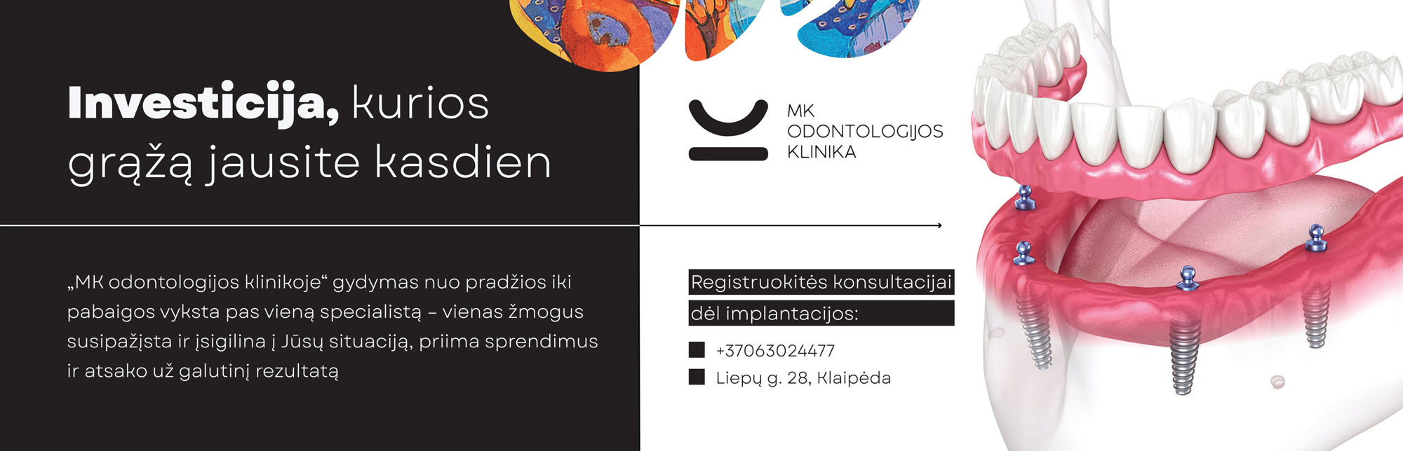 Investuokite protingai: šiuolaikinė implantologija vietoje išimamų protezų