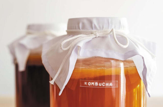 Kombucha. Šis fermentuotas arbatos gėrimas turi aitrų, rūgštelį skonį. Kai kurios prekės ženklo produktai yra su cukrumi, todėl patikrinkite etiketę.