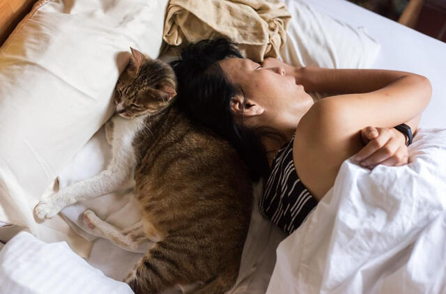 Katė gali likti puiki draugė, bet artimą fizinį kontaktą, ypač naktį, verta riboti savo pačių sveikatos labui.