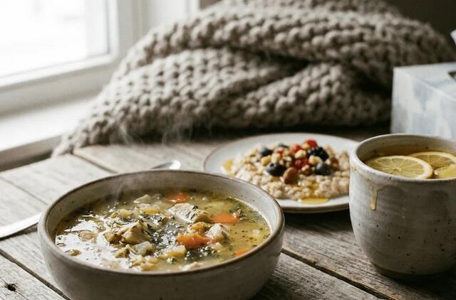 Rinkitės lengvą, maistingą maistą ir gerkite daug vandens — tai padės organizmui greičiau pasveikti.