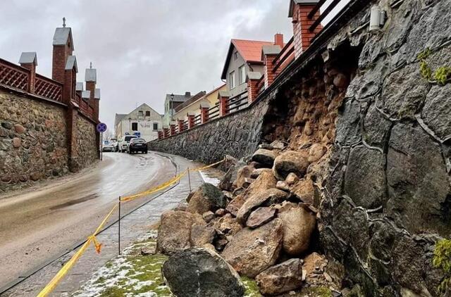 (1)Kaip teigė Švėkšnos seniūnas Alfonsas Šeputis, trečiadienį pabiro dalis atraminės sienutės. Vieta aptverta „Stop“ juostomis. Laimei, akmenys nepažiro ant važiuojamosios dalies, nesiekė ir šaligatvio.