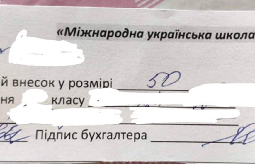 „Vakarų ekspresas“ gavo Tarptautinės Ukrainos mokyklos išduotą grynųjų pinigų paėmimo dokumentą ukrainiečių kalba. Tokia dokumento šaknelė buvo išduodama ukrainiečiams, kurie mokėjo stojamąjį mokestį į planuojamą kurti ukrainiečių mokyklą Klaipėdoje.