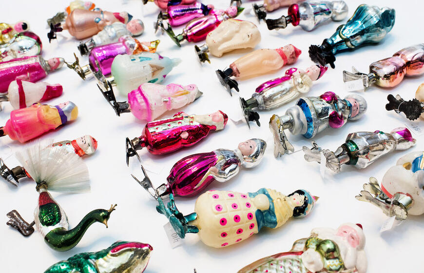 Kalėdinių žaisliukų rinkiniai puikiai atspindi ir to meto realijas ar istorinius, politinius niuansus.
