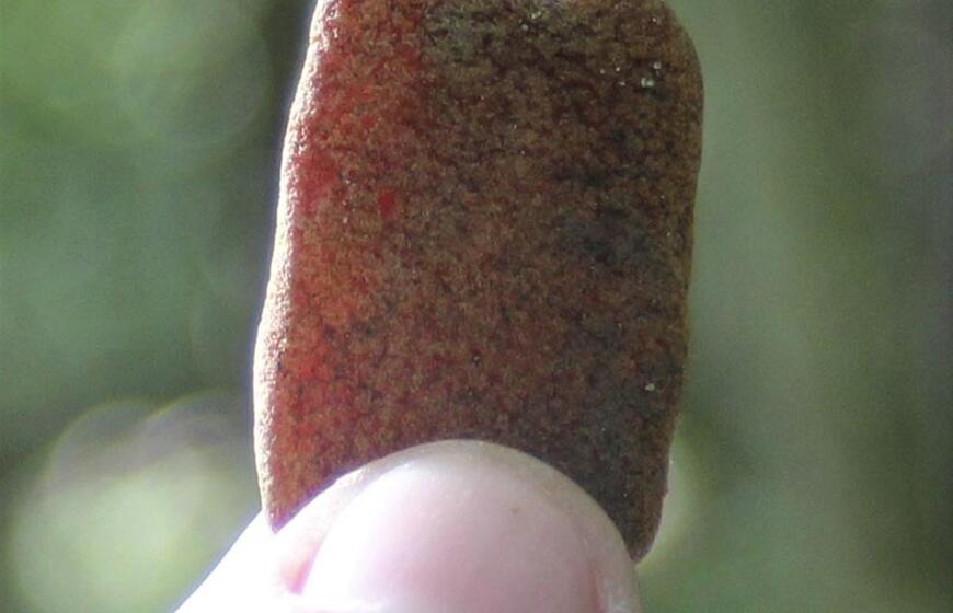 Be puodų šukių, piliakalnio aikštelėje, vėjo išpustytame žemės paviršiuje, šių eilučių autoriui 2016-aisiais pavyko rasti ir kol kas vienintelį žinomą gintarinį artefaktą: nuo laiko storu žievės sluoksniu pasidengusį kabutį nulūžusia skylute pakabinimui.