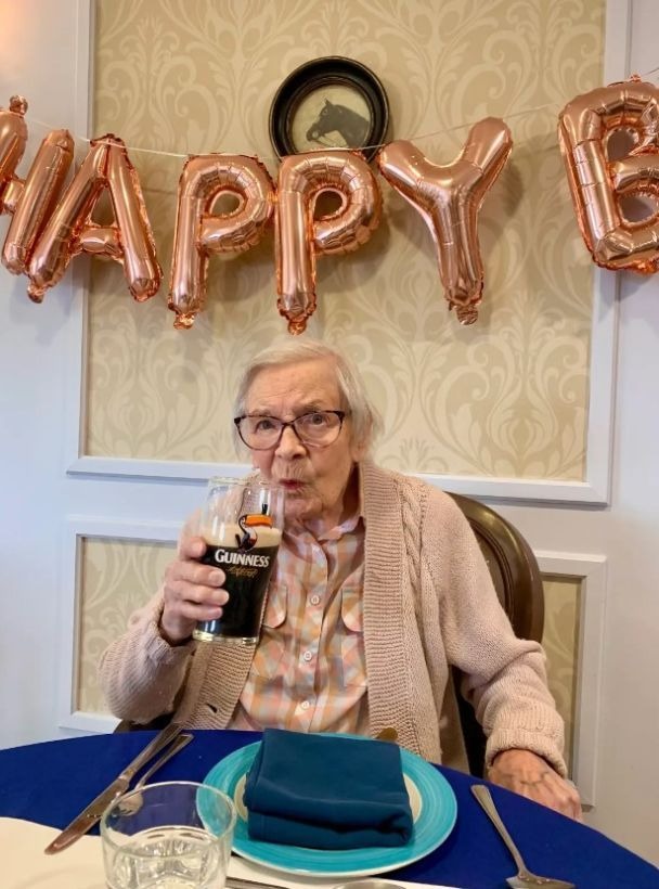 Spalio 2 d. ji atšventė savo jubiliejų, išgerdama pintą mėgstamo gėrimo slaugos namuose ir pasimėgaudama vakarėliu su draugais, kaimynais ir pagalbiniais darbuotojais.
