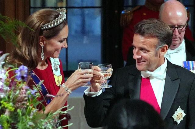 Per oficialią vakarienę situacija tik pablogėjo. Nuotraukos, kuriose Macronas mirkteli besišypsančiai Kate Middleton, akimirksniu išplito socialiniuose tinkluose.