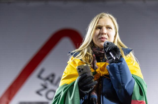 (2)Šeštą kartą Lietuvos geriausia metų sportininke pripažinta olimpinė ir daugkartinė pasaulio čempionė atvyko į protestą bei lipo ant scenos. Čia susirinkusius nustebino kartu su minia užtraukusi Eurikos Masytės dainą „Laisvė“.
