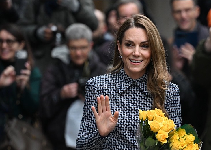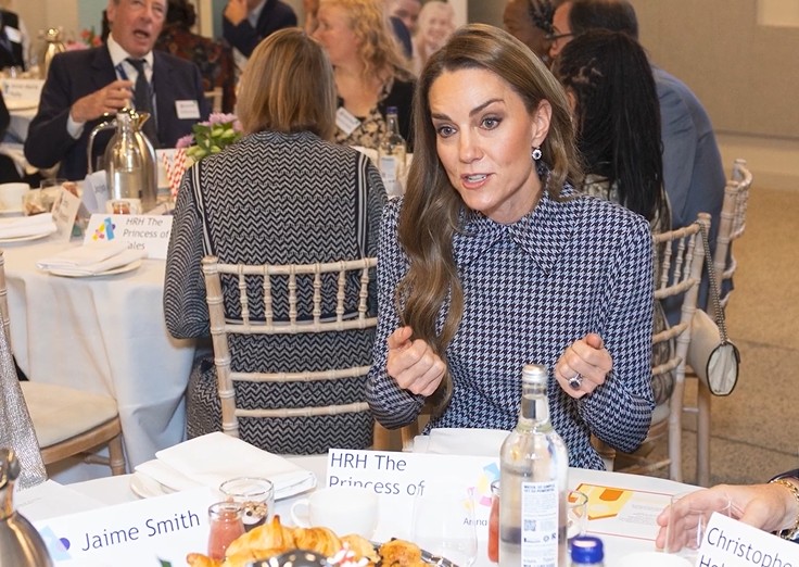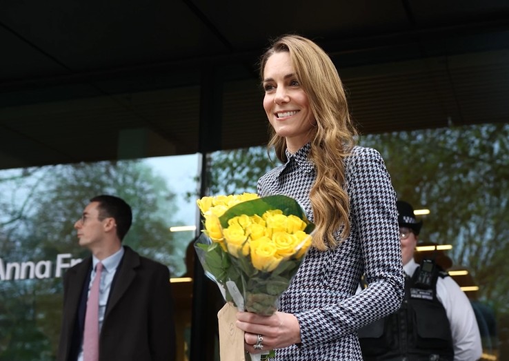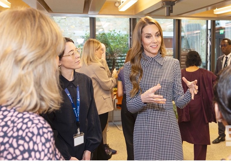 Keliaudama į labdaros organizaciją, užsiimančią vaikų psichinės sveikatos problemomis, Kate šiltai pasveikino organizacijos darbuotojus ir šypsojosi, stebėdama viską, kas vyksta.