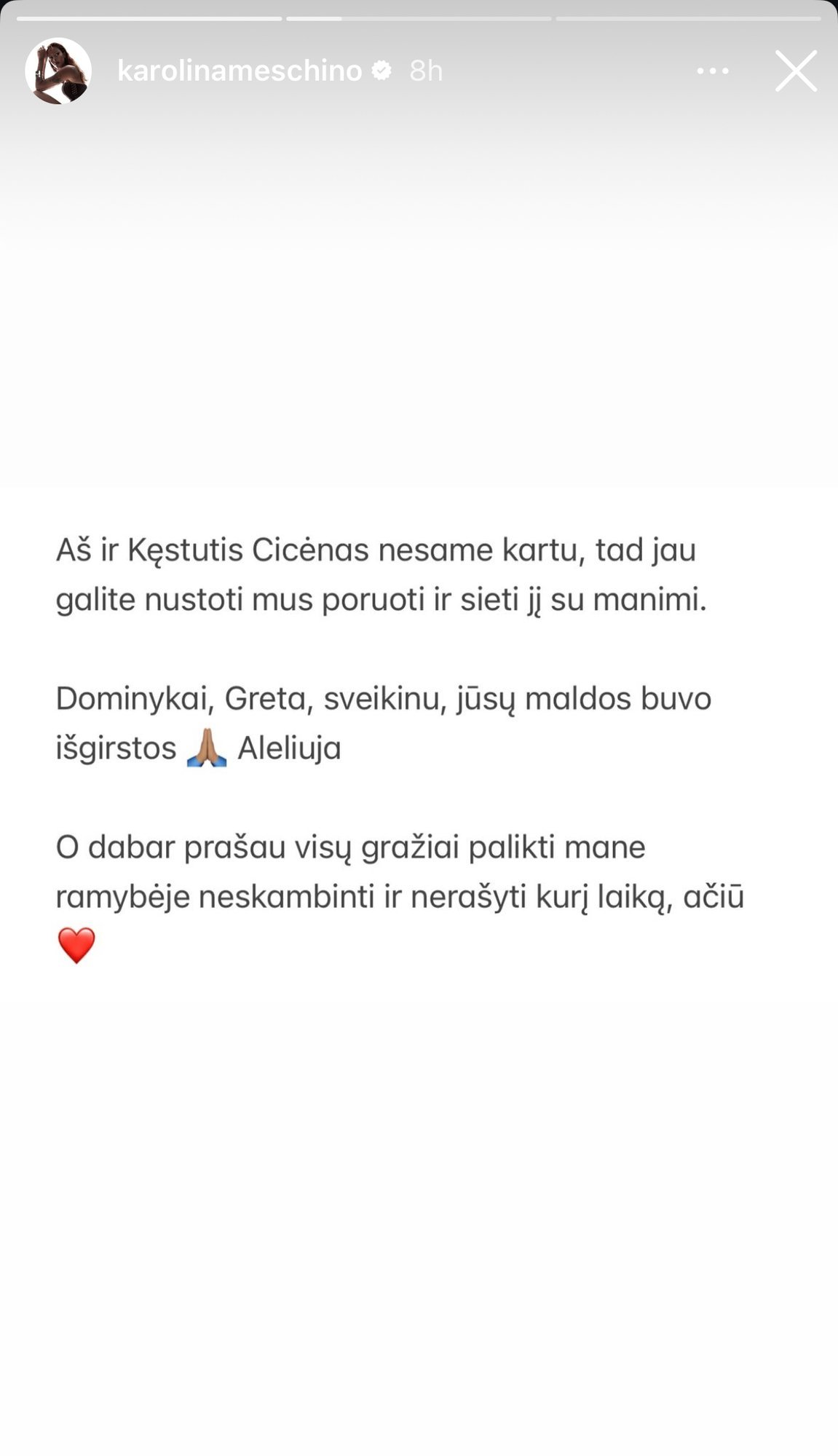 Karolina Meschino išsiskyrė su Kęstučiu Cicėnu: sveikinu, jūsų maldos buvo išgirstos