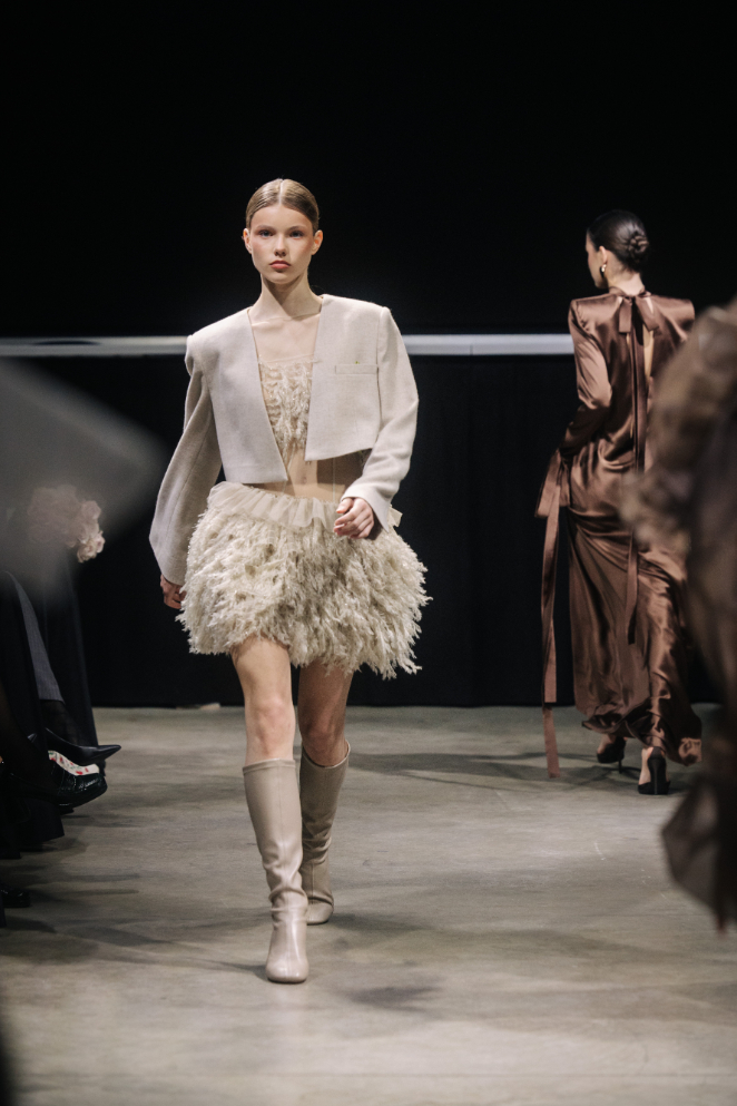 Jos drabužių kolekcijos spalvos – iš gamtos: smėlis, saulė, akmenys, vanduo. Suknelės siuvinėtos sidabro vijokliais, šviesos spinduliuose jos žaižaruoja, lyg aptaškytos žibančiais jūros purslais. Visa tai publiką užbūrė, po kolekcijos ilgai netilo ovacijos, o dizainerė skendo gėlėse.