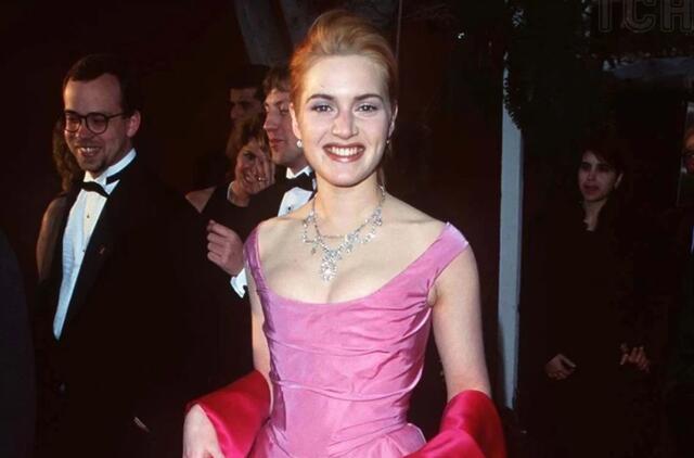 Kramtomosios gumos spalvos apranga: kaip atrodė pirmoji Kate Winslet „Oskaro“ raudonojo kilimo suknelė