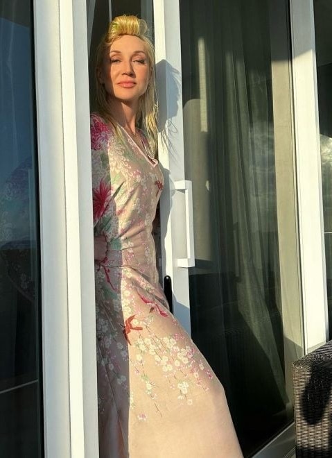 O taip pat, Kristina Orbakaitė pasigyrė spalvinga išvyka su kūrybine suknele su savo mamos Alos Pugačiovos atvaizdu.