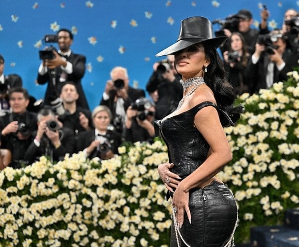 Kardashian įvaizdį papildė odinė skrybėlė, dengianti pusę veido, prabangus daugiasluoksnis Moussaieff deimantų vėrinys ant kaklo, lašo formos deimantų auskarai ir dideli deimantų žiedai ant rankų.