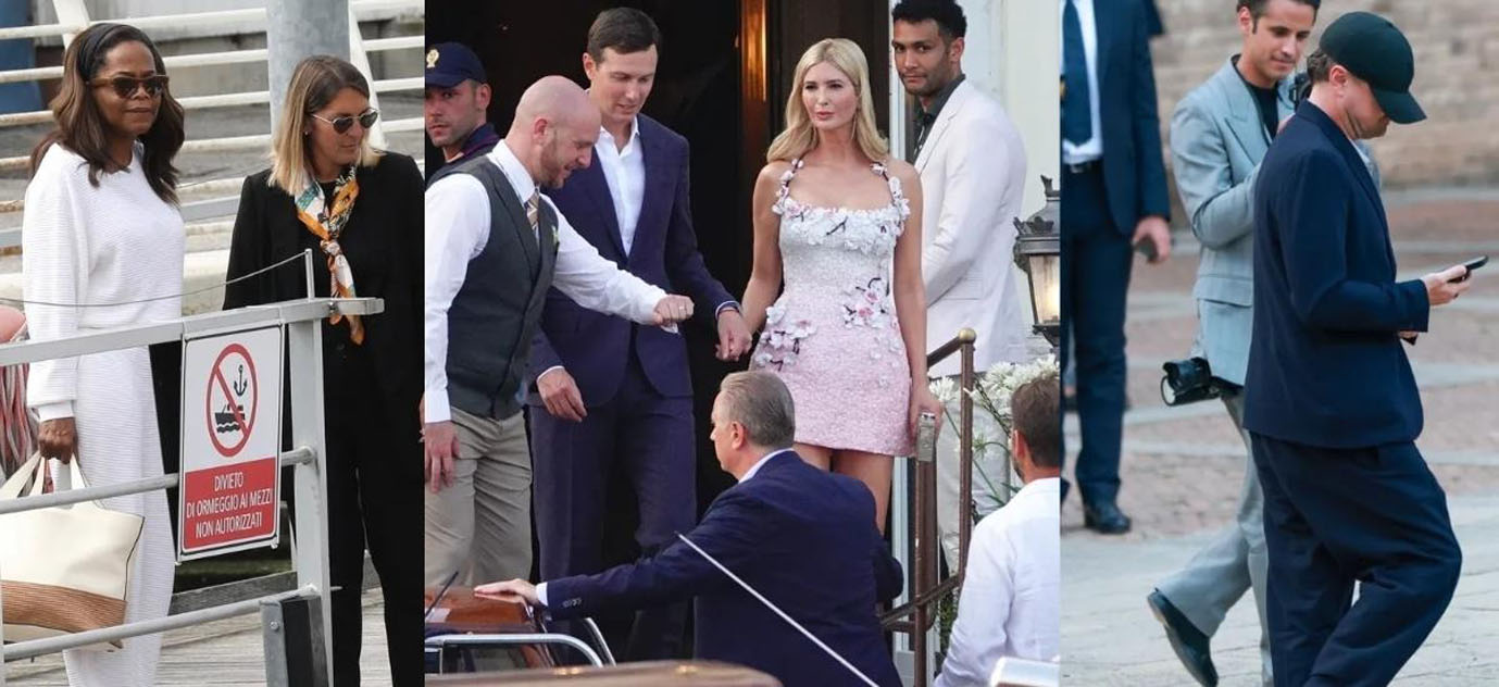 Žiniasklaida jau spėjo užfiksuoti kai kuriuos į vestuves atvykusius svečius. Tarp jų – Kris Jenner su dukromis Kim ir Chloe Kardashian, aktoriai Orlando Bloom ir Leonardo DiCaprio, taip pat JAV prezidento dukra Ivanka Trump su vyru Jared Kushner. Amerikietiškojo futbolo legenda Tomas Brady, Cory Gamble, Opra Winfrey, Gail King ir Diana von Fürstenberg taip pat atskrido į Veneciją.