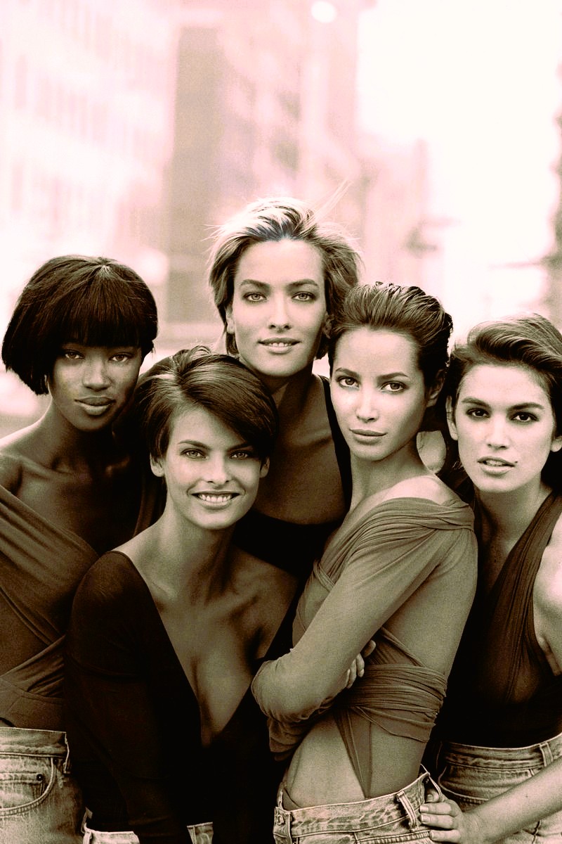 Tarp jų ryškiausiai spindėjo Cindy Crawford – su savo žymiuoju apgamu virš lūpos, prabangiais plaukais ir atletiška, bet moteriška figūra. Ji įkūnijo pasitikėjimą, sveiką grožį ir tvirtą charakterį.