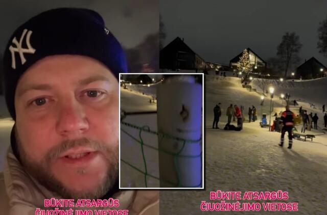 „Būkime atsargūs čiuožinėjimo vietose. Štai kas būna, kai tokie aukšti kalnai“, – vaizdo įraše kalbėjo Saulius ir parodė, jog vietoje – greitoji medicinos pagalba.