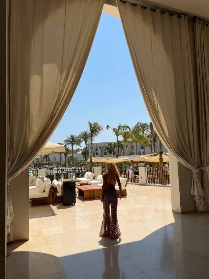 „Mūsų kelionių organizatoriai rekomendavo „Serry Beach Resort“ – arabiško tipo viešbutį – su jų muzika, kultūra, maistu. Jeigu nori pajusti vietinį skonį – labai gera patirtis. Aišku, jeigu kažkas bijo arabiško maisto, visada yra alternatyvų. Net mūsų vaikams, kurie tikrai išrankūs, buvo iš ko rinktis. Kadangi viešbutis mažesnis, kompaktiškesnis, aukšto lygio aptarnavimas labai jaučiasi. Tu nespėsi nusisukti, o jau prie tavęs prieina darbuotojas – siūlo gėrimų, užkandžių, rūpinasi viskuo. Tikrai jautiesi prižiūrėtas ir gali atsipalaiduoti.“