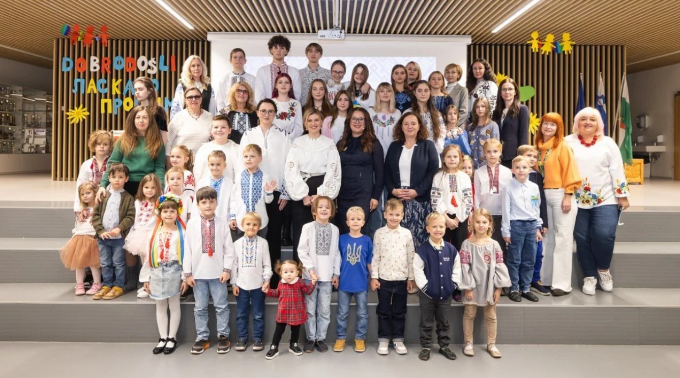Darbo vizito Slovėnijoje metu Olena Zelenska apsilankė Liublianos ukrainiečių šeštadieninėje mokykloje, kur susitiko su mokiniais ir savanoriais mokytojais.