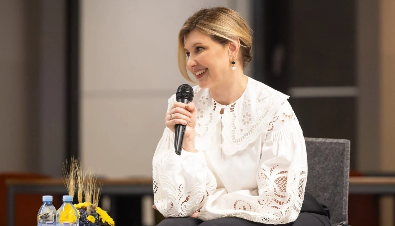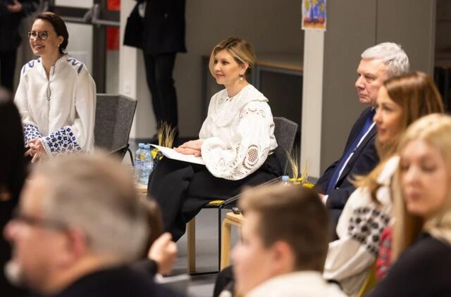 Olena Zelenska lankosi Liublianos mokykloje, vilkėdama siuvinėtus marškinius su puošnia apykakle (nuotraukos)