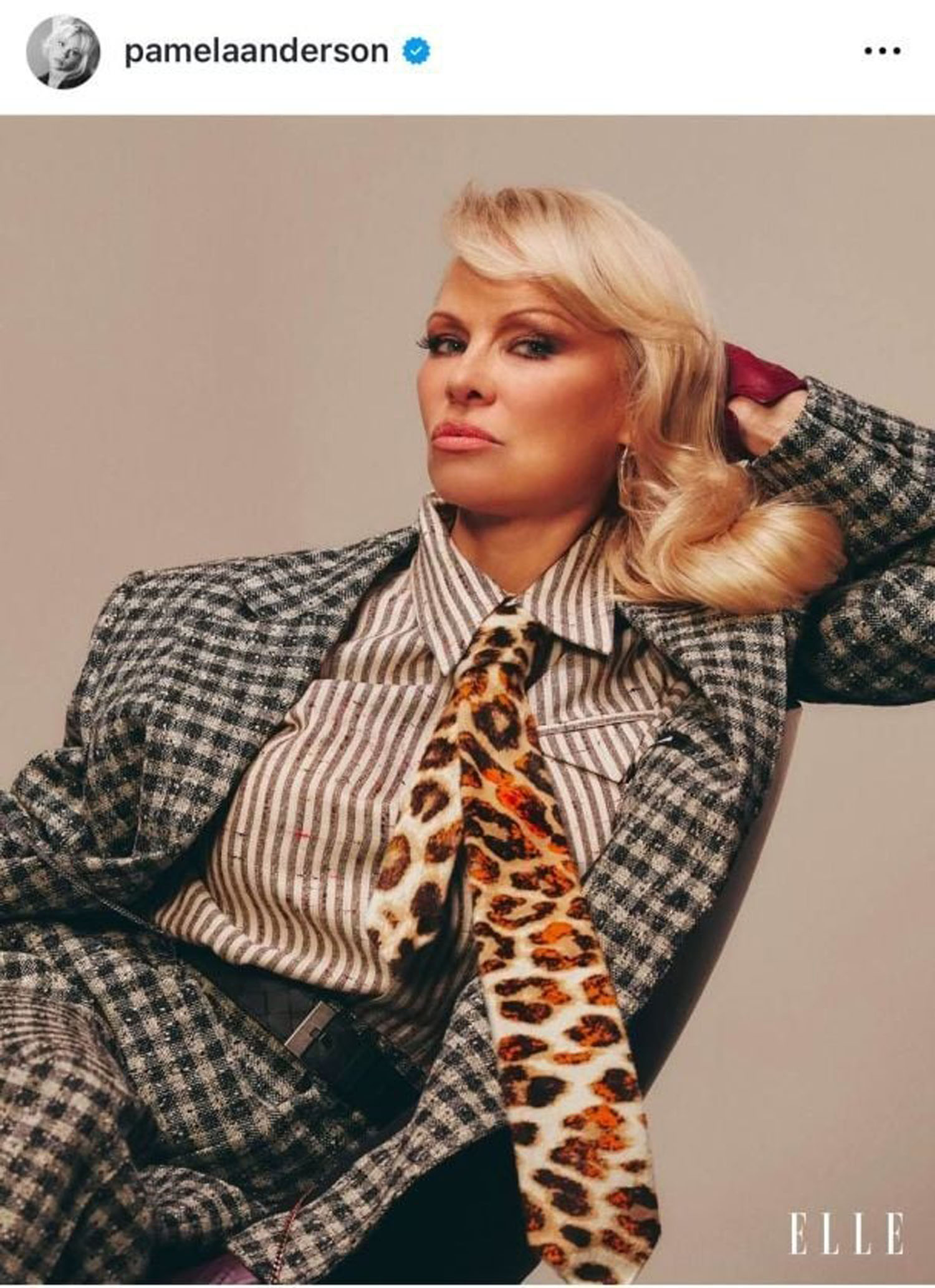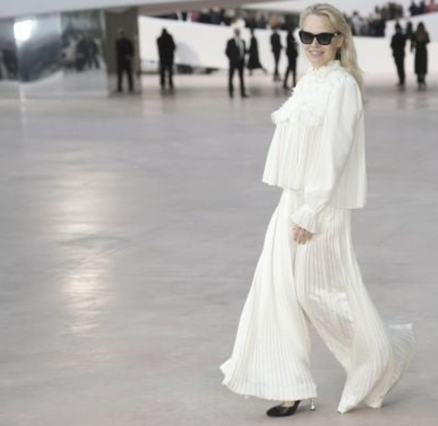 Primename, kad anksčiau Pamela Anderson dalyvavo „Chanel“ šou Paryžiuje. Ji vilkėjo pieno spalvos kostiumėlį iš klostuoto audinio. Aprangą sudarė lengva laisvo stiliaus palaidinė ir plačios kelnės-palazzo. Palaidinė buvo ilgomis rankovėmis, o jos viršų puošė gėlių aplikacija.