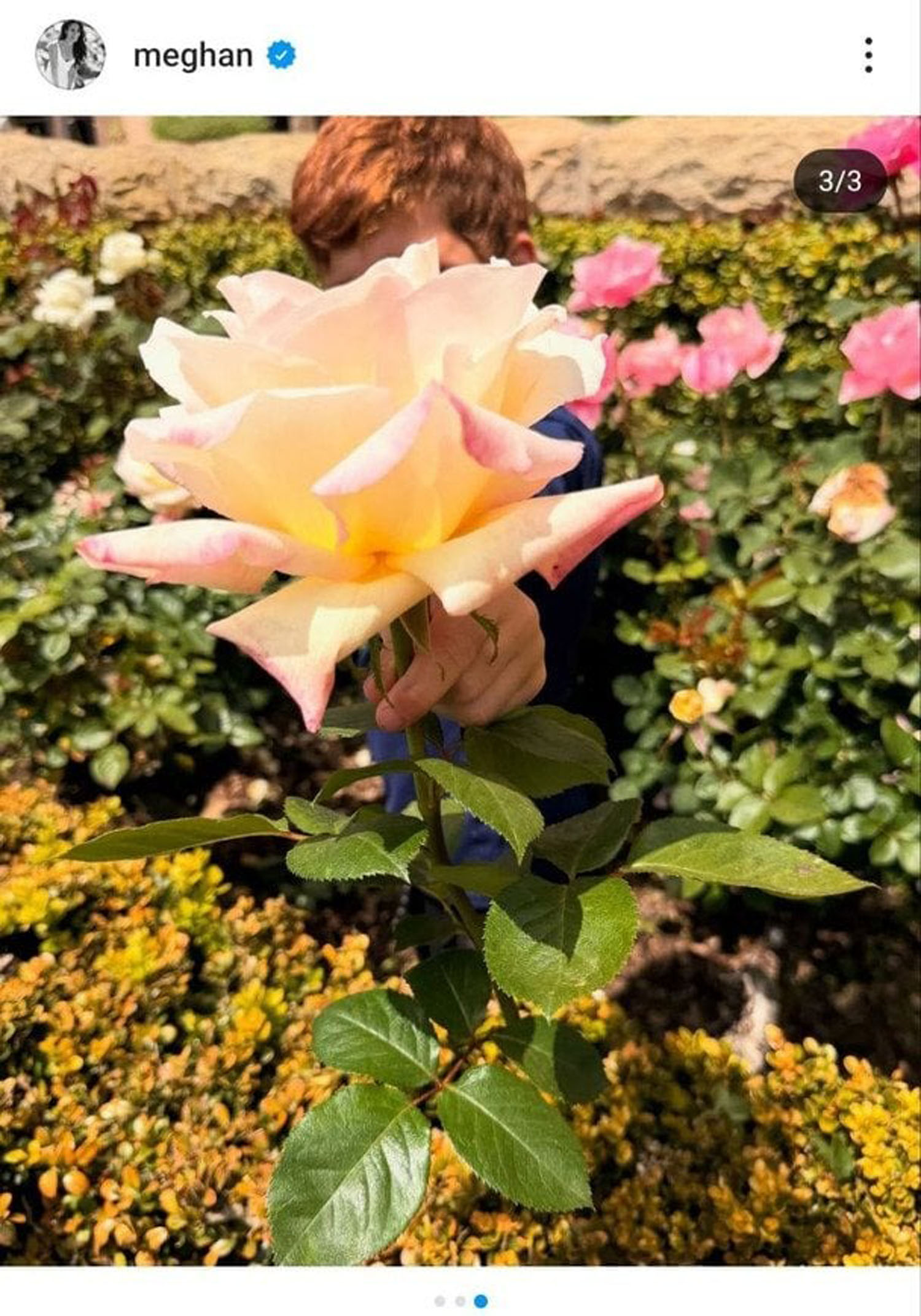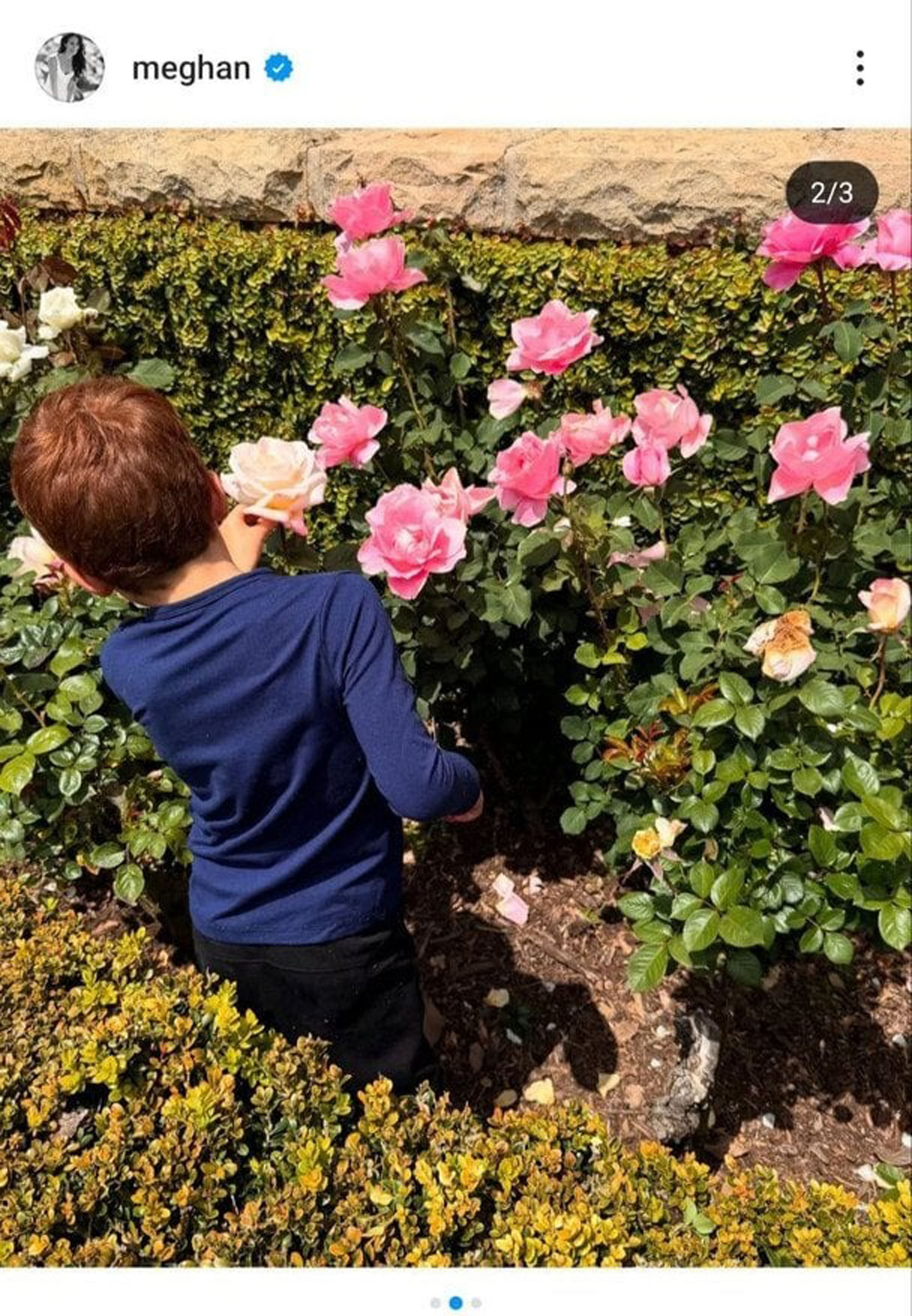 Sekmadienį, balandžio 27 d., Meagan pasidalino keliomis naujomis savo vaikų nuotraukomis, kurias padarė vaikščiodama po savo namų Montecito sode, kur šeima gyvena nuo 2020 m.