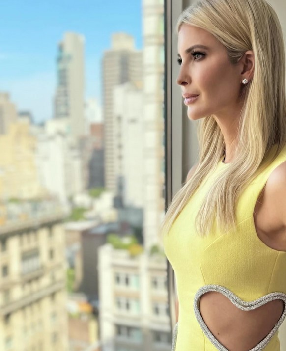 Kitoje liepos mėnesį paskelbtoje nuotraukoje Ivanka savo profilį demonstravo vilkėdama geltoną suknelę.