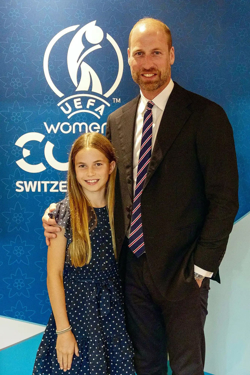 Liepos 27 d., sekmadienį, 43-ejų princas iš Velso ir 10-metė princesė Šarlotė atvyko į Šveicariją, kad stebėtų UEFA moterų futbolo čempionato 2025 m. finalą, kuriame varžosi Anglijos nacionalinė rinktinė. Tai buvo pirmasis Šarlotės futbolo rungtynes užsienyje.