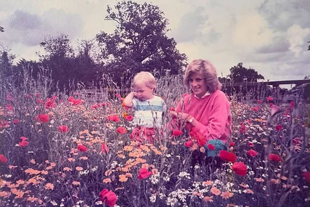 Prie įrašo Williamas pridėjo 1984 metų nuotrauką. Kadre princesė Diana stovi gėlių lauke šalia savo dvejų metų sūnaus. Akimirka buvo užfiksuota pagrindinėje šeimos rezidencijoje – Haigrouv hause Glosteršyro grafystėje.