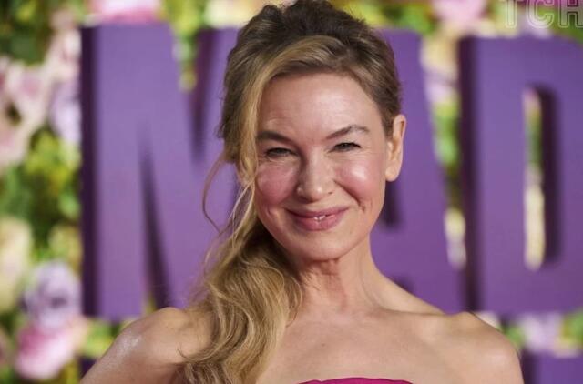 Renee Zellweger su purpurinės spalvos suknele: Bridžitos Džouns premjeroje: „Įsimylėjusi berniuką“