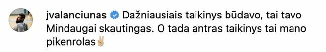 O tada antras taikinys tai mano pikenrolas“, – parašė J. Valančiūnas.