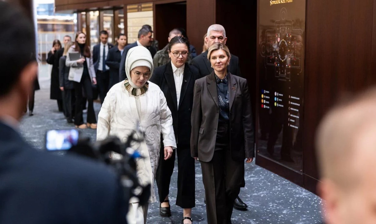 Su elegantiška šukuosena ir simboline brože: Olena Zelenska lankosi Turkijos bibliotekoje