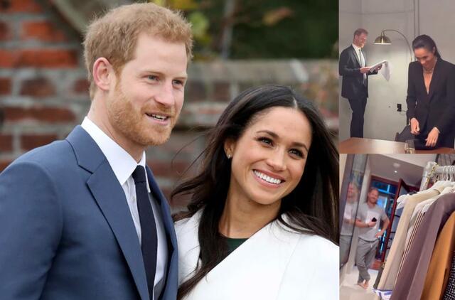 Įraše pasirodo ir princas Harry – stovintis basomis, vilkintis pilkus sportinius treningus, besišypsantis, kol Meghan filmuoja drabužių stelažą.