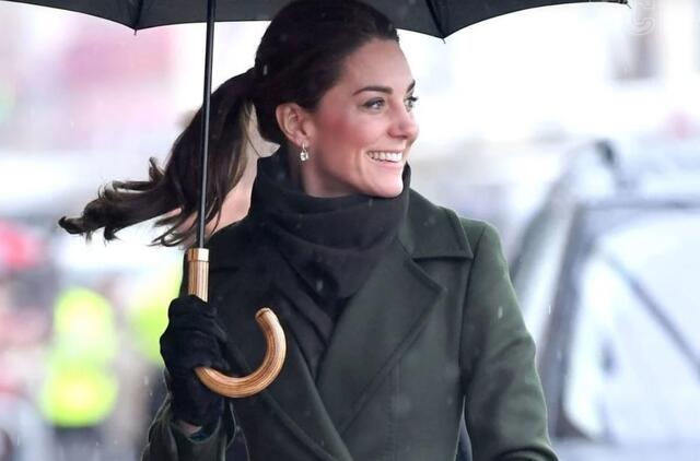 Kate nešėsi nedidelę „Lytton“ rankinę iš „Smythson“. Velso princesės plaukai buvo palaidi, ausyse ji segėjo „Kiki McDonough“ auskarus, o ant kaklo - mėgstamą „Aquascutum“ languotą šaliką.